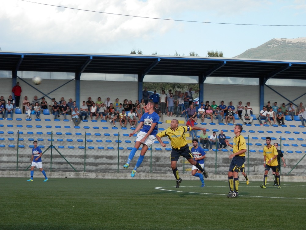 Pronto riscatto per il Roccaravindola che batte alla prima al "Mario Castaldi" la neo-promossa Alife, alla quale vanno fatti però i complimenti per come ha interpretato la gara. Una vittoria voluta e meritata dai blucerchiati che hanno sempre cercato di giocare la palla, secondo i dettami di mister Iannarelli che recupera a tempo pieno Sisti e Torrice con Vettese che entrerà nella ripresa. La prima occasione arriva già al 5° quando Forte verticalizza per Sisti che tira prontamente, ma è bravo l'ex Paglia a deviare in angolo. Dall'altra parte è un altro ex, Iameo, sugli sviluppi di un calcio d'angolo, a sfiorare il palo di testa. Sisti non è al 100 %, ma quando parte in velocità per gli ospiti sono dolori. Al 21° l'esterno blucerchiato si rende protagonista di una grande azione personale, entra in area, ma il suo gran tiro è respinto fortuitamente da Pacilio davanti la porta. Poco dopo su una palla vagante in area locale, è Iameo a colpire di testa, ma Di Lullo è bravo a deviare in angolo. La gara è combattuta e le due squadre non risparmiano colpi. Al 41° però l'equilibrio si rompe grazie al gran goal di Cambio che se ne va sulla sinistra, scambia con Forte e fa secco il portiere in uscita. Al 60° Forte di testa lancia Sisti che fa partire un bolide sul quale è ancora pronto Paglia che respinge. Sul capovolgimento di fronte Iameo tenta un pallonetto su Di Lullo che è bravissimo a respingere, arriva A. Di Sorbo che fa partire un tiro-cross che va fuori. Ma l'occasione più importante per gli ospiti arriva al 66° quando Offreda calcia dal limite una splendida punizione che si stampa sul palo. Passato il pericolo, il Roccaravindola si riorganizza e chiude la partita. Minuto 84: splendido lancio col goniometro di Vettese per l'inserimento centrale di Sisti che stoppa la palla e fa secco il portiere d'esterno destro. Gli applausi sono inevitabili. Non è finita perchè all'89° il Roccaravindola triplica con Cambio che, sugli sviluppi di uno schema su calcio d'angolo, prende palla al limite e fulmina Paglia con un gran tiro che termina all'angolino. Ci sarebbe anche l'occasione per il 4° goal con Capraro che sfiora la traversa a tempo scaduto, ma sarebbe stato troppo penalizzante per l'Alife che esce comunque a testa alta dal confronto.