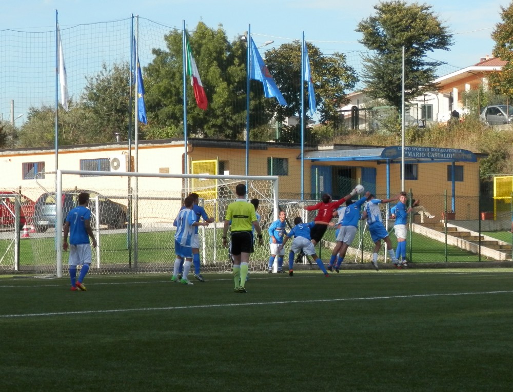 Torna alla vittoria il Roccaravindola contro un Roseto che ha dimostrato di valere tutti i punti che ha in classifica. La squadra pugliese infatti è capitolata solo a 3 minuti dalla fine uscendo comunque a testa alta dal confronto. Buona la gara del Roccaravindola, soprattutto nel primo tempo e nella parte finale della gara, quando si è rivisto in campo anche Sisti dopo l'infortunio al tallone. Mister Iannarelli deve rinunciare agli squalificati Cambio e Vettese, mentre tra gli ospiti manca per lo stesso motivo l'esperto Vannella. La partenza dei blucerchiati è fulminante e già al 7° passano in vantaggio al termine di una spettacolare azione con Capraro che di prima intenzione lancia sulla sinistra Di Vito, bravo a mettere sul secondo palo per Di Iorio che di piatto fa secco il portiere. Al 13° lo stesso Di Iorio, ben servito da Di Placido, restituisce il favore al giovane esterno ex Lazio Di Vito, ma il tiro di quest'ultimo passa di un niente vicino al palo. Dall'altra parte è invece pericoloso Tarantino su un calcio d'angolo, ma il suo colpo di testa non inquadra per poco la porta. Gioca bene il Roccaravindola e al 26° Torrice lancia Di Iorio che si inserisce ottimamente dalla destra, ma è bravo il portiere ad uscire con tempismo sventando la minaccia. Rischia molto invece il Roccaravindola alla mezzora quando un lungo lancio viene raccolto in area da Tarantino, sul filo del fuorigioco, ma il suo tiro è debole e impreciso e si perde sul fondo. Parte forte la squadra ospite nella ripresa alla ricerca del pari. Al 54° bella combinazione Tarantino-Mangiacotti, con quest'ultimo però fermato in angolo da Di Lullo in uscita. 3 minuti dopo, su una punizione dalla destra, Umbriano anticipa tutti di testa, ma la palla carambola sulla parte alta della traversa e termina fuori. Poco dopo al termine di una mischia è Longo a provarci da posizione defilata, ma è bravo il sempre positivo Varone (classe 96) a salvare. Dall'altra parte invece il rientrante Sisti se ne va sulla destra e appoggia all'accorrente Capraro, il cui tiro però sfiora di un niente il palo. Goal mancato goal subito, perchè sul capovolgimento di fronte il Roseto pareggia: una palla filtrante dell'ottimo De Palma (un classe 96 dal sicuro avvenire) viene raccolta in piena area da Loretti che è bravo a dribblare Di Lullo e a mettere in rete. Reagisce subito però il Roccaravindola che al 78° sfiora il goal con Di Vito in mischia, ma Ferrazzano si salva di piede. Insiste la squadra di Iannarelli e all'86° Di Vito lavora una bella palla sulla destra, serve bene Capraro che sfiora il palo. Un minuto dopo però l'episodio che decide la gara: Capraro raccoglie ai 20 metri un rinvio di pugni del portiere e tira immediatamente, lo stesso Ferrazzano respinge con le mani fuori area e l'arbitro, tra le proteste degli ospiti, assegna la punizione dal limite al Roccaravindola con conseguente espulsione del portiere (verrà sostituito in porta dal difensore Umbriano in quanto già effettuate le 3 sostituzioni); si incarica del tiro capitan Forte che buca la barriera ed insacca per il 2-1 finale. L'ultima occasione a tempo scaduto con un netto rigore negato a Sisti, chiaramente messo giù per un braccio in piena area da Perrone, ma l'incerto Mottillo non assegna un rigore apparso sacrosanto.