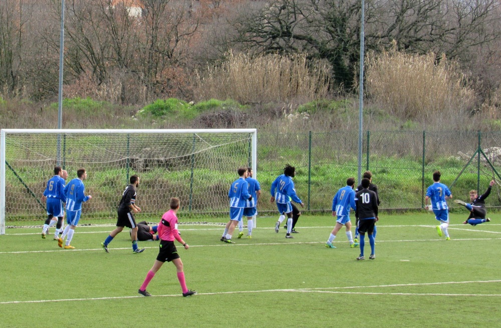 Una vittoria rocambolesca per il Roccaravindola in una gara non adatta ai deboli di cuore. Partita che sembrava chiusa nel primo tempo, ma gli ospiti a 3 minuti dal termine completano la rimonta prima però del decisivo goal del baby De Chiara. Blucerchiati con gli uomini contati (fuori tra gli altri gli squalificati Iannitelli e Capaldi), ospiti privi invece degli ex Iannetta e Petrocelli (squalificati) e dell'indisponibile Antonucci. La prima occasione è per gli ospiti con un colpo di testa di Iallonardi, su cross di Giannini, con la palla che termina di poco fuori. Al 9° però il Roccaravindola passa in vantaggio con Forte che di prima intenzione incrocia perfettamente sul secondo palo un cross dalla sinistra di Di Vaio (vedi foto). Passano solo 5 minuti e tutti in piedi per il grande goal di Daniele Bove che, sugli sviluppi di un angolo battuto da Del Prete, si coordina perfettamente e al volo in semi-rovesciata mette alle spalle di Ciummo (vedi video e foto). Proteste blucerchiate al 16° quando l'arbitro ferma per fuorigioco molto dubbio Melfi lanciato a rete. Il Roccaravindola però insiste e al 25° arriva il terzo goal: cross di De Chiara dalla sinistra per Forte che a centro area con un sinistro al volo mette in rete (vedi foto). Finisce così un primo tempo dominato dai locali. Sembra tutto facile e invece succede l'incredibile. Forte intanto si infortuna, ma dopo un po' di cure rientra stoicamente in campo pur zoppicando. Al 63° però un clamoroso regalo dell'arbitro rimette il Volturnia in carreggiata concedendo tra lo stupore generale, anche degli ospiti, un ridicolo rigore per un presunto quanto inesistente fallo di Camara su Konte a ed è lo stesso colored biancoblù a realizzare spiazzando Quirico. Il gentile omaggio arbitrale carica gli ospiti che poco dopo per poco non ne sfruttano un altro quando viene concesso un calcio di punizione molto dubbio che Marilungo si vede deviare in angolo da un ottimo intervento di Quirico (vedi foto). Ancora proteste al 71° quando Di Vaio cade in area a contatto con un avversario, ma questa volta l'arbitro dice che è tutto regolare. Lo stesso Di Vaio subito dopo ha un'ottima chance su bel servizio di Melfi, ma il suo tiro da buona posizione termina a lato. Al 79° ospiti in rete con Bezpalko, ma la sua posizione è in off-side e l'arbitro annulla. Insiste però la squadra ospite che all'83° accorcia ancora le distanze con Iallonardi che si produce in un'azione personale con il suo tiro da posizione defilata che beffa Quirico sul primo palo. Un minuto dopo ancora un'azione pericolosa per i ragazzi di Panella: fuga di Melfi in contropiede, palla centrale per De Chiara il cui tiro è deviato in extremis dal portiere. Poco dopo proteste ospiti per un goal annullato per fuorigioco a Bangura, ma all'87° il pareggio arriva grazie allo stesso giocatore di colore che sotto porta realizza dopo un'azione personale di Marilungo sulla sinistra. Finita? Ma nemmeno per sogno perché 2 minuti dopo Forte, pur zoppicando, verticalizza perfettamente per De Chiara che è bravissimo a superare il portiere in uscita. Gli ospiti non ci stanno e nei minuti di recupero ci provano prima con Konte (palla alta) e poi con Marilungo (diagonale di poco fuori). Il fischio finale di Maglioli ridà respiro e morale ai blucerchiati che ottengono così un'importante vittoria.