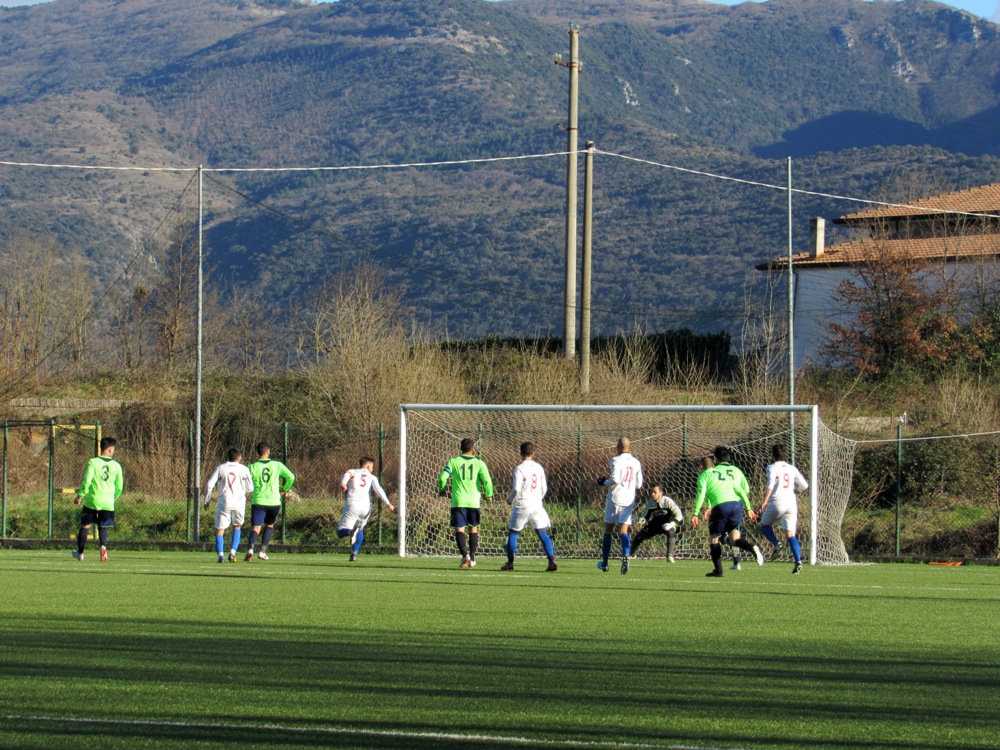 Settima sconfitta consecutiva per un Roccaravindola senza mordente e poco reattiva. Una débacle che brucia ancora di più se si tiene conto che subita contro il Mignano, ultimo in classifica e mai vincente in questo torneo. Ancora una volta l'approccio è stato totalmente sbagliato, tanto è vero che dopo 5 minuti Bove e compagni erano già incredibilmente sotto di 2 reti per la doppietta di Pace che ha approfittato, in entrambe le occasioni, di due clamorosi svarioni della retroguardia blucerchiata. Al 14° però i ragazzi di Didone rientrano in partita con Luca Fetta che sfrutta al meglio un cross di Del Prete dalla sinistra. Nonostante il forte vento contrario, il Roccaravindola capisce che può pareggiare e ci prova al 31° con un colpo di testa di Bove, su punizione di Del Prete dalla sinistra, ma la palla termina alta sulla traversa (vedi foto). Il goal è nell'aria e arriva poco dopo ancora per merito di Luca Fetta che concretizza un bel cross di Avallone dalla sinistra. Dall'altra parte è invece sempre Pace il più pericoloso, ma il suo tiro da pochi passi termina alto sulla traversa. Il Roccaravindola scende in campo nella ripresa con tanti buoni propositi, anche per il vento a favore, e al 51° va vicina alla marcatura con una velenosa punizione dalla distanza di Del Prete respinta in tuffo da Corbo. Grande occasione al 67°: Laliscia in corridoio serve Luca Fetta che tira prontamente, ma è miracolosa la respinta del portiere prima che Avallone alzi troppo la mira da pochi passi. Finiscono qua però le occasioni per i blucerchiati, che al 71° rischiano di capitolare quando Grieco sfiora il palo con un forte diagonale. Il Roccaravindola non si ritrova e 2 minuti dopo subisce il goal con Marandola che, ben servito in area, con freddezza supera l'incolpevole Perna. A tempo scaduto arriva addirittura il 4° goal ospite con Buco che senza troppi problemi supera in pallonetto il portiere. Una sconfitta pesante per i ragazzi di mister Didone, anche perché lo stesso Mignano si avvicina così ad un solo punto e a retrocedere direttamente sarà proprio l'ultima in classifica, mentre altre 4 squadre si "giocheranno" l'altro posto che scenderà di categoria.