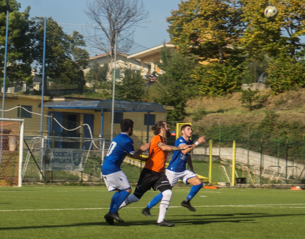Inizia col piede sbagliato il Campionato per il Roccaravindola, sconfitto in casa dal Real Prata, squadra ben assortita e che sicuramente sarà una delle protagoniste del torneo. Problemi di formazione per mister Capiluongo che in difesa deve fare a meno di Cenami e Pirolli e in attacco di Potena e Giordano. Pronti via e gli ospiti passano in vantaggio: l'ex Laliscia crossa in area, la palla incoccia la testa di Bertone e beffardamente si infila a fil di palo. La reazione è immediata con una bella azione corale con Antonio Cambio che in dribbling entra in area, ma il suo diagonale sfiora il palo. Prime proteste dei blucerchiati contro l'incerto Erriquez al 13° quando non concede una chiara regola di vantaggio con Del Prete lanciato a rete per un fallo precedente su Valvona. Dopo un pericolo dell'ex Sesto Campano Giunti salvato da Laurelli, al 26° A. Cambio mette una gran palla per Valvona che però, disturbato da Marangi, tira debolmente tra le braccia di Pezza da pochi passi. Insiste il Roccaravindola e al 37° va vicino al pari con Laurelli che si vede ribattere nei pressi della linea il suo tiro a colpo sicuro. Sull'angolo successivo però un tiro di Biasiello viene respinto da un braccio di un difensore e l'arbitro concede il rigore che capitan Del Prete realizza (vedi video). Poco dopo è bravo invece Melaragno a deviare un tiro velenoso a giro di Lanni dal limite. E proprio all'ultimo secondo dei 3 minuti di recupero comandati dall'arbitro, Laliscia viene messo giù in area e il conseguente rigore di Fantini riporta gli ospiti in vantaggio (vedi foto). Al 53° arriva anche il terzo goal dei ragazzi di Grieco: un tiro di Laliscia viene deviato proprio sui piedi di Delli Carpini che tutto solo davanti a Melaragno non ha difficoltà ad insaccare. La gara si fa anche un po' nervosa con il Roccaravindola che ci prova però con poca convinzione. Solo al 63° Placella stoppa in area e gira verso la porta, ma la palla termina alta di poco. Ancora protagonista in negativo l'arbitro che nel finale espelle per una doppia ammonizione assolutamente assurda Laurelli che così salterà la trasferta di domenica prossima a Carpinone. La gara si chiude con una traversa scheggiata su punizione da Spada e con la gioia degli ospiti negli spogliatoi.