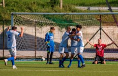 Michael Sisti abbracciato dai compagni dopo il suo 2-0 al 17°