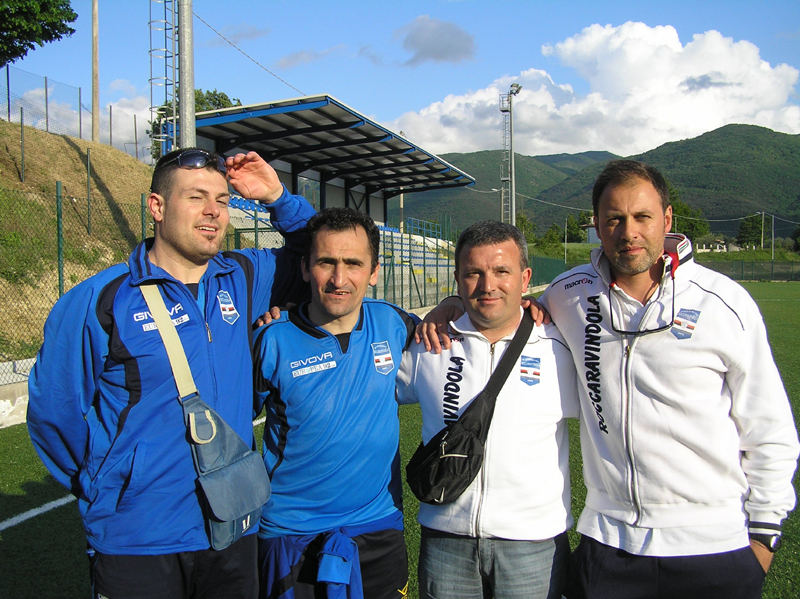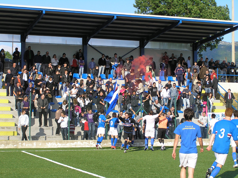 Nel giorno della Festa Patronale di S.Michele, il Roccaravindola batte un ottimo Fornelli e ritorna dopo due anni di Promozione nel campionato di Eccellenza. Una stagione trionfale per la società blucerchiata che dopo aver agguantato la finale regionale juniores, è riuscita attraverso i play-off a salire in Eccellenza. Grandi meriti alla società, al mister Donato Berardi, al preparatore atletico Mauro Sferra, al fisioterapista Antonio Perna e a tutti i giocatori che hanno festeggiato nel migliore dei modi il primo anno nel nuovo impianto dedicato alla memoria di Mario Castaldi. Un impianto che mercoledì era stato teatro del trionfo della Capriatese e questa volta invece di quello del Roccaravindola. Al cospetto del pubblico delle grandi occasioni, non è stato facile però avere la meglio su una squadra come il Fornelli che è uscita a testa alta dal confronto e che ora spera di salire anch’essa in eccellenza come ripescata. Il Roccaravindola, nonostante poteva accontentarsi anche del pari dopo il 2-2 dell’andata, parte subito forte. Al 7° è D’Ottavio, sugli sviluppi di un calcio d’angolo, a colpire bene di testa ma sulla linea di porta salva Paolo Castaldi, riprende Varricchione il cui tiro viene deviato in angolo da un difensore. 2 minuti dopo applausi a scena aperta per il grandissimo goal del giovane Sisti che, su un calibrato cross di Di Pietrantonio, si esibisce in una spettacolare semi-rovesciata che termina in rete, ma il suo urlo viene strozzato dalla segnalazione di fuorigioco da parte del guardalinee. Insiste il Roccaravindola e al 12° Fascia mette una gran palla al centro dove svetta Varricchione, ma è bravissimo il portiere a deviare in angolo. Il Fornelli, scampati questi pericoli, comincia a macinare gioco e al 15° va vicina al goal con una punizione di Carnevale dalla distanza che sfiora il palo. Al 27° un gran tiro dell’ex D’Agostino costringe Russo alla grande deviazione; sul susseguente angolo lo stesso D’Agostino mette in rete di testa, ma dopo essersi appoggiato su Romano e l’arbitro annulla. Su quell’episodio si accendono gli animi e ne fanno le spese Sacco e Apollonio che vengono mandati anzitempo negli spogliatoi. Al 35° Varricchione ci prova con un tiro a spiovente dalla distanza, ma la palla sfiora il sette. 4 minuti dopo però il Roccaravindola passa: Varricchione dalla destra cambia gioco per la parte opposta, dove Sisti anticipa tutti e batte l’incolpevole Angiolilli. Il primo tempo si chiude con una buona opportunità per Carnevale, ma è Romano a salvare nei pressi della sua porta. Nella ripresa è il Fornelli chiaramente ad osare di più con i locali più guardinghi e pronti a scattare in contropiede. Proteste ospiti al 46° per un fallo di mani in area di Iannarelli, ma la palla calciata da Zarli carambola prima sulla coscia e poi sul braccio del difensore di Berardi con l’arbitro che considera giustamente il tutto involontario. Al 64° il Fornelli va anche in goal, ma la posizione di D’Agostino è nettamente in off-side e l’arbitro annulla. I biancoverdi tentano il tutto per tutto e all’82° Russo si supera per alzare sulla traversa un bolide di Gabriele Petrarca dalla distanza; sull’angolo susseguente D’Ottavio rischia l’autogoal con Russo che, aiutato dalla traversa, riesce a sventare. 2 minuti dopo invece è clamorosa l’occasione sciupata da Varricchione che se ne va tutto solo, ma al posto di appoggiare allo smarcato Sisti tenta un pallonetto sul portiere che riesce a bloccare. Nel finale da registrare solo le due espulsioni comminate da Centofanti e la grande festa sugli spalti e negli spogliatoi dei blucerchiati che dedicano questa vittoria alla memoria di 3 amici che quest’anno hanno lasciato la vita terrena: Mimì Di Mauro, presidente della società nei primi 10 anni di attività, Vincenzo Castaldi, storico custode dell’impianto ravindolese, e Antonio Varricchione, il papà dell’attaccante blucerchiato.