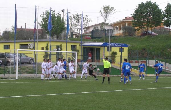 Entrambe le squadre volevano vincere: il Roccaravindola per raggiungere la terza posizione, che poi è la migliore nella griglia play-off, e il Roseto per cercare un miracoloso posto negli spareggi promozione. Alla fine l’ha spuntata la squadra pugliese alla quale però non è bastato vincere considerando i risultati provenienti dagli altri campi. Nonostante una buona prestazione il Roccaravindola deve recitare però il mea culpa per non aver chiuso la gara sul 2-1 e aver subito nei 2 minuti successivi i goal che hanno deciso la gara. E il rammarico aumenta in quanto la vittoria avrebbe consentito di superare al 3° posto il Roccasicura. In seguito a questa sconfitta il Roccaravindola dovrà ora incontrare il Fornelli col vantaggio della classifica per gli scontri diretti ottenuti in campionato. La squadra di Berardi parte subito forte e subito il giovane Sisti si procura due ottime occasioni: al 4° con il suo tiro parato in 2 tempi dal portiere e al 9° quando, liberato ottimamente da Varricchione, è bravo a rubare il tempo a un difensore ma su di lui chiude bene il portiere che sventa la minaccia. Il Roseto però non sta a guardare e in avanti il duo Marcantonio-V. Giannini è sempre pericoloso. All’11° il Roccaravindola rischia anche l’autogoal con Elio Castaldi che su una punizione di Marcantonio colpisce di testa con Russo che evita con bravura la rete. Passa un minuto e dopo un batti e ribatti in area la palla termina tra i piedi di V. Giannini che tutto solo mette dentro; il guardalinee segnala la chiara posizione di off-side di Giannini, ma giustamente l’arbitro convalida perché l’ultimo a toccare la palla prima del marcatore è un difensore locale. Il Roccaravindola prova a reagire e al 17° ci prova Forte dalla distanza ma il suo tiro va fuori di poco. Il Roseto è però una brutta gatta da pelare e al 21° sfiora il raddoppio quando Riccio dalla sinistra pesca sul secondo palo il solito V. Giannini che di piatto cerca di beffare Russo, che però è bravissimo a respingere. Al 24° Forte ci prova questa volta su una punizione dalla sinistra, ma Finelli, appostato sul primo palo, salva sulla linea di porta a portiere battuto. Poco dopo in contropiede è ancora la squadra ospite a rendersi pericolosa quando Marcantonio riesce a liberare al tiro V. Giannini, ma ancora una volta trova sulla sua strada un miracoloso Russo. Nel finale di tempo un’azione tambureggiante in area pugliese porta al tiro prima E. Castaldi, il cui forte tiro viene respinto da un difensore, e poi Sisti, che manda alto da buona posizione. La ripresa inizia subito con il Roccaravindola più convinto e determinato. Al 50° i blucerchiati potrebbero sfruttare meglio una punizione di seconda in area, ma il tiro di Arena viene respinto dal portiere. Due minuti dopo Varricchione si libera bene in area, ma è sfortunato perché il suo gran tiro colpisce in pieno il palo. Il goal è nell’aria e arriva un minuto dopo: cross al bacio di E. Castaldi dalla sinistra sul secondo palo dove arriva Varricchione che in acrobazia mette dentro. Il Roccaravindola ci crede e attacca con tutti i suoi uomini. Al 55° Forte pesca bene in area Cambio, il cui tiro viene però ancora respinto dal portiere. Dall’altra parte Marcantonio riesce a provarci solo su punizione al 58° con la palla che termina di poco alta sulla traversa. Il Roccaravindola invece vuole vincere e al 64° il baby Sisti si produce in una grande percussione centrale, ma il suo tentativo viene ancora deviato dall’ottimo Giustino. Poco dopo Sisti lancia sulla destra Fascia, il cui tiro accarezza il palo e termina fuori. All’81° però il Roccaravindola vede premiati i suoi sforzi quando un lungo lancio di Sacco viene ciccato da De Vivo con Sisti che non si fa pregare e realizza sottomisura. 2 minuti dopo i locali potrebbero anche chiudere la gara con una grande azione di Varricchione che, dopo uno scambio con Forte, si presenta a tu per tu con il portiere che riesce però a chiudergli lo specchio. Goal mancato, goal subito, anzi due goal subiti, perché il Roseto in due minuti riesce a ribaltare la situazione. All’84° una punizione dal limite di Marcantonio viene respinta da un braccio alto di Fascia in barriera, rigore che lo stesso Marcantonio realizza. Un minuto dopo arriva anche il definitivo 3-2 con la difesa dei locali che si fa sorprendere sulla sinistra dove V. Giannini riesce ad infilare Russo in uscita. Nel finale da registrare solo l’espulsione di Forte per doppia ammonizione e qualche palla buttata in avanti dai blucerchiati per raggiungere il pari. Domenica prossima intanto si va nella vicina Fornelli per disputare un agguerrito play-off. Al Roseto resta la soddisfazione di aver chiuso con una vittoria di prestigio il suo campionato.