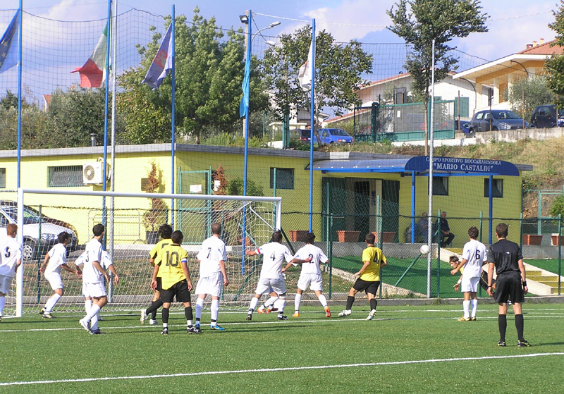 Parafrasando un tormentone di "Santoriana" memoria, la domanda nasce spontanea: che ci fa Vittorio Esposito nell'Eccellenza molisana? Il piccolo "Messi del Molise" da solo demolisce un Roccaravindola che dà tutto in campo, gioca per gran parte della gara alla pari della capolista, ma quando ti ritrovi a fronteggiare un fenomeno come Esposito c'è veramente poco da fare. Se poi ci si mette anche un arbitro molto impreciso che soprattutto nel primo tempo penalizza oltremisura i blucerchiati, è chiaro che tutto diventa estremamente difficile. Il risultato finale farebbe pensare a un dominio incontrastato dei gialloneri, ma così non è stato. I ragazzi di Berardi sono scesi in campo molto concentrati e decisi a giocarsi le loro chances contro un Petacciato che veleggia in testa alla classifica in coabitazione con il Real Isernia. La partenza dei locali infatti è di quelle molto promettenti. Al 3° Varricchione rifinisce per Verrecchia che tira prontamente, ma è miracolosa la deviazione in angolo di Grassi. Al 6° la prima giustificata protesta dei blucerchiati quando al limite della loro area si scontrano il portiere Grassi e il difensore Cozzolino con la palla che termina a Varricchione che segna, ma l'arbitro annulla per una presunta, quanto inesistente, spinta di Cambio (anche nelle immagini televisive si vede chiaramente che non c'è nessuna spinta). Davvero incredibile! Il Petacciato si fa vedere in avanti al 13° con una punizione di Cozzolino dalla distanza, ma Russo c'è e devia in angolo. Al 21° ancora una topica dell'arbitro per poco non provoca il goal degli ospiti: il giovane Tommaso Russo nel proteggere palla al limite dell'area subisce chiaramente fallo da Esposito; entrambi i giocatori terminano a terra, ma per l'arbitro è incredibilmente punizione dal limite per gli ospiti con Esposito che manda la palla di poco alta sulla traversa. Nonostante tutto però, il Roccaravindola c'è e al 33° è bravo Varricchione a servire in area Nocera che si gira bene, ma Grassi respinge con bravura. Nel miglior momento dei locali però, arriva il goal degli ospiti: è Esposito a lavorare una bella palla e dalla sinistra cambia perfettamente gioco dalla parte opposta dove Delli Carri ha tutto il tempo di stoppare e di far secco Russo. Il Roccaravindola accusa il colpo e nel finale di tempo rischia due volte: la prima al 42° con Cozzolino che sul secondo palo tutto solo, su un calcio d'angolo, spedisce di testa sull'esterno della rete e poi al 44° con Recchia che in piena area colpisce male e manda fuori da buona posizione. Ripresa con il Roccaravindola deciso a rimettere la gara su binari migliori e al 49° sfiora il goal con Varricchione che dal limite corregge al volo un traversone di Bertolino, ma Grassi blocca con bravura. Insiste la squadra di casa e al 56° Varricchione guadagna una punizione dal limite che lui stesso si incarica di battere, ma la palla passa vicinissima alla traversa e l'azione sfuma. 2 minuti dopo ancora locali pericolosi con Nocera che appoggia di petto per Varricchione che è bravo a coordinarsi e in mezza rovesciata impegna ancora il portiere. Ma a sorpresa, al 61°, arriva il raddoppio degli ospiti: Recchia conquista palla a centrocampo e subito verticalizza per Esposito, il quale si presenta a tu per tu con Russo e lo infila. Il Roccaravindola però non demorde e tenta di accorciare le distanze. Al 66° grande discesa sulla sinistra di Fascia, palla al centro per Varricchione che, dopo un velo di Farias, tira prontamente con la palla che sfiora però la traversa. Dall'altra parte però c'è un Esposito che non perdona e al 68°, con il suo inconfondibile stile, si beve tutta la difesa prima di incrociare benissimo sul secondo palo dove Russo non può arrivare. I ragazzi di Berardi non meritano un passivo così pesante e all'89° riescono e segnare il meritato goal della bandiera con Varricchione che, su calibrato lancio di Boromeo, entra in area e spara un bolide che termina sotto la traversa. Ma non è finita perchè il genio di Esposito è ancora in agguato e al 92° mette in rete il 4° goal allo stesso modo di quello precedente con dribbling in serie su tutti i difensori e gran tiro in diagonale sul secondo palo. Quando uno è forte è forte, ma il dubbio rimane: che ci fa Vittorio Esposito nell'Eccellenza molisana?