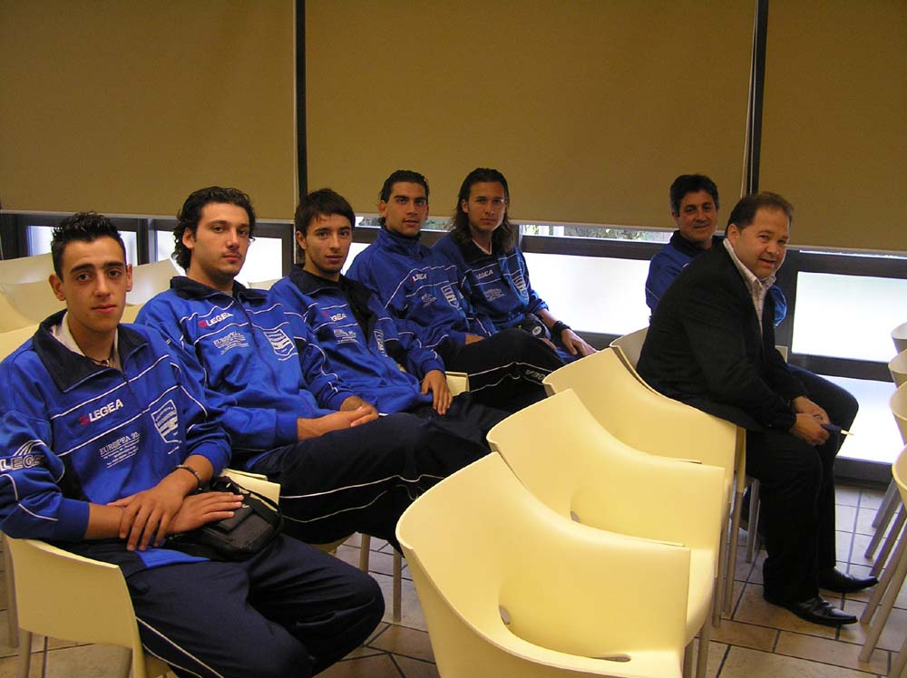 | l'Assessore allo sport del Molise Rosario De Matteis e il consigliere della FIGC Molise Ugo D'Alessandro premiano il Roccaravindola, presente con il Presidente Raffaele Volpe, il segretario Pasquale Castaldi, mister Sergio Siravo e i giocatori Pasquale Forte, Feliciano Ricci, Federico Fella, Antonio Capiluongo e Christofer Di Sandro. |