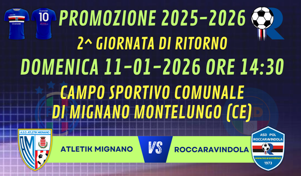 | COSI' ALL'ANDATA: ROCCARAVINDOLA 1973 - ATLETIK MIGNANO 2-1 (vedi servizio) |